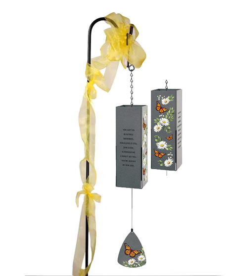With Flowers - This comes displayed on a shepherd's hook with flowers.