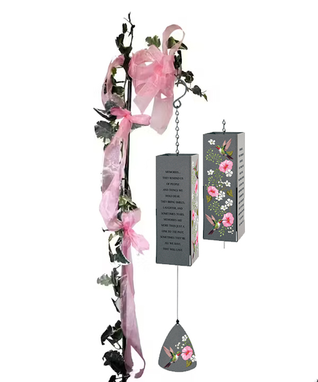 With Flowers - This comes displayed on a shepherd's hook with flowers.